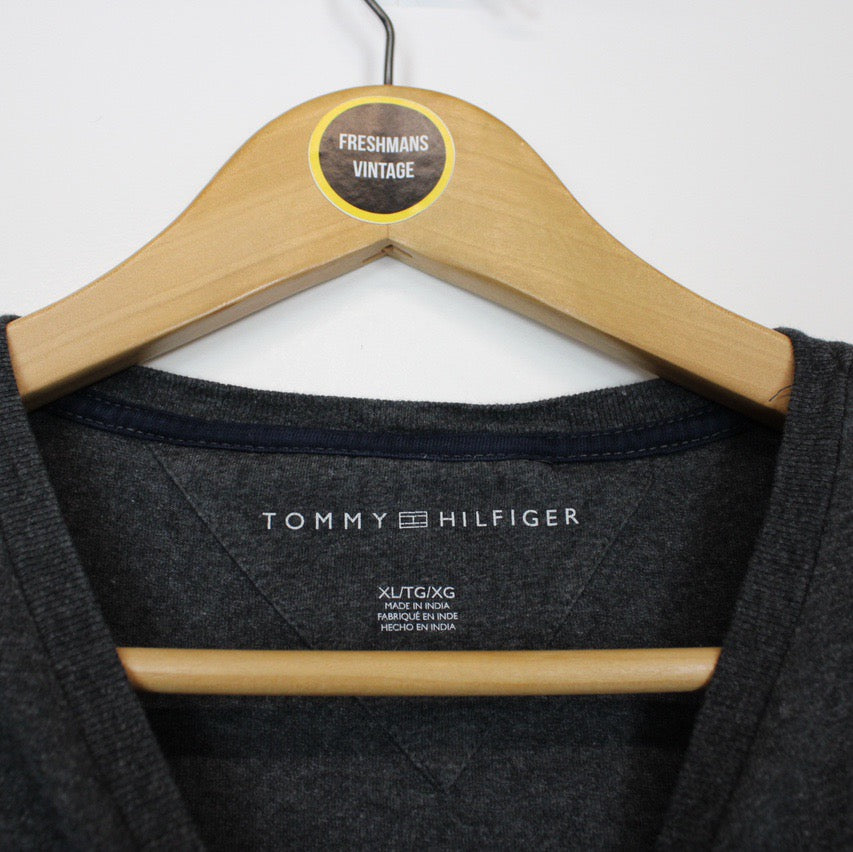 Vintage 00's Tommy Hilfiger Dark Grey Crew Neck Short Sleeve T-Shirt Size on label: XL Our recommended size: XL Pit to pit (inches): 23 Length (inches): 27.5 All products listed are vintage unless stated otherwise in the description. These items are pre-loved and pre-worn, resulting in small signs of wear and fading. We think this adds to their unique authenticity, but if an item has any major flaws these will be stated. Please contact us if you have any further questions!