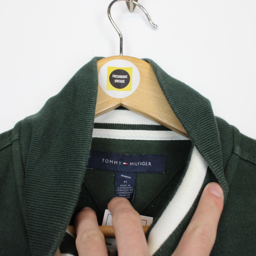 Vintage 00's Tommy Hilfiger Green and White Zip Up Spellout Track Jacket Size on label: Medium Our recommended size: Medium Pit to pit (inches): 23 Length (inches): 27 All products listed are vintage unless stated otherwise in the description. These items are pre-loved and pre-worn, resulting in small signs of wear and minor fading. We think this adds to their unique authenticity, but if an item has any major flaws these will be stated below. Please contact us if you have any further questions!