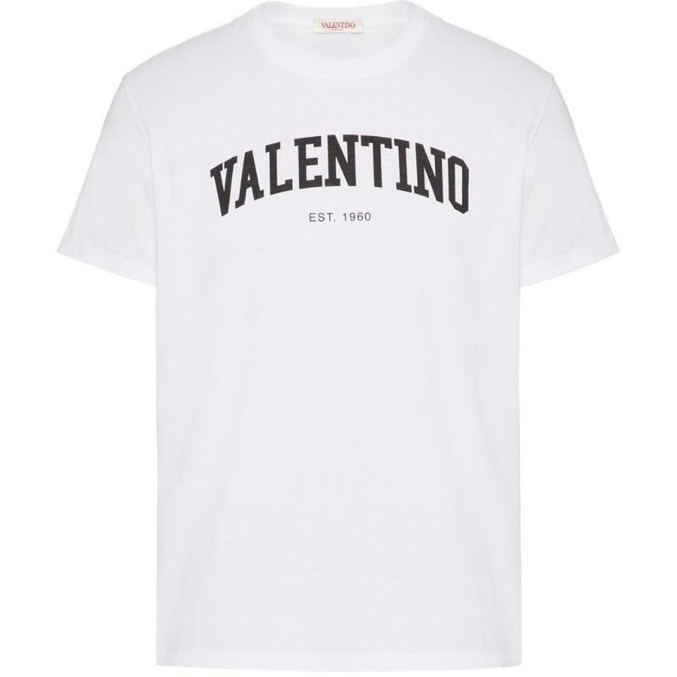 Valentino Garavani White and Black College Logo Short Sleeve T-Shirt