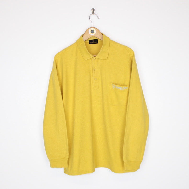 Vintage Valentino Christy Mustard Yellow Long Sleeve Spellout Polo Shirt