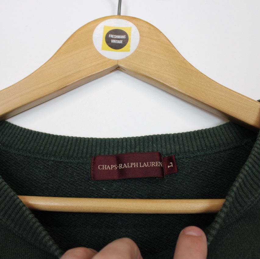 Vintage 90's Chaps Ralph Lauren Green Crew Neck Spellout Sweatshirt Jumper Size on label: Large Our recommended size: Large Pit to pit (inches): 23 Length (inches): 26.5 All products listed are vintage unless stated otherwise in the description. These items are pre-loved and pre-worn, resulting in small signs of wear and sometimes minor flaws. We think this adds to their unique authenticity, but if an item has any bigger flaws these will be stated. - The sweatshirt does have some minor fading to the front, this is reflected in the price Please contact us if you have any further questions!