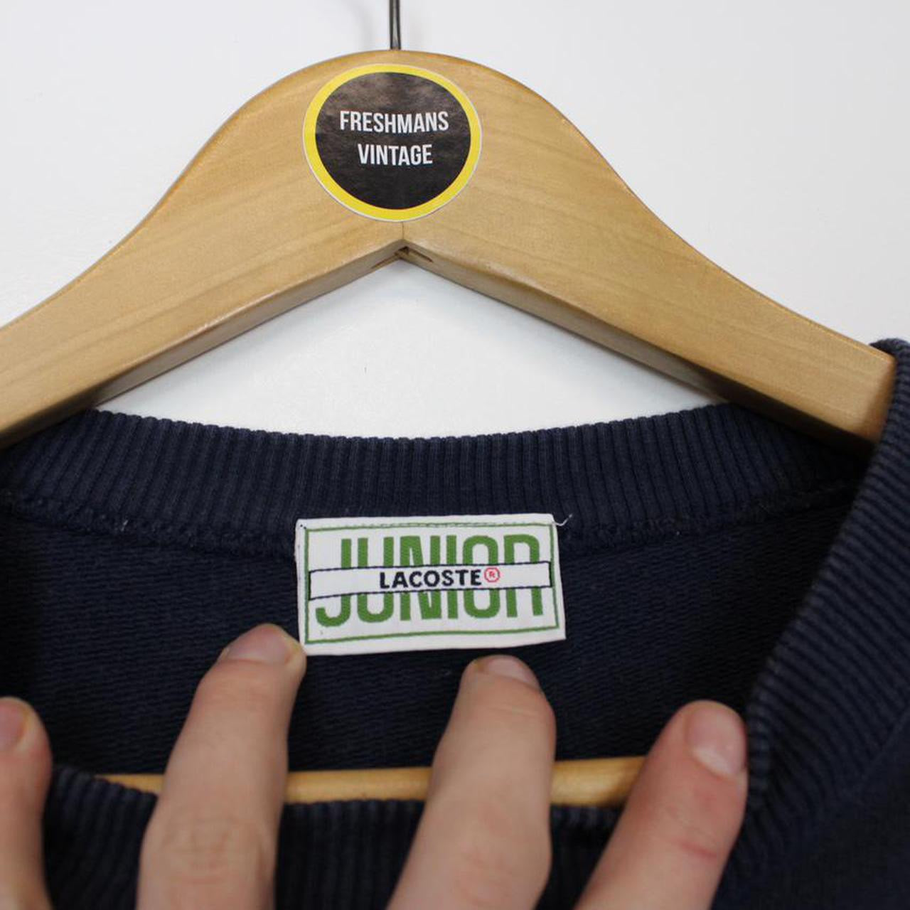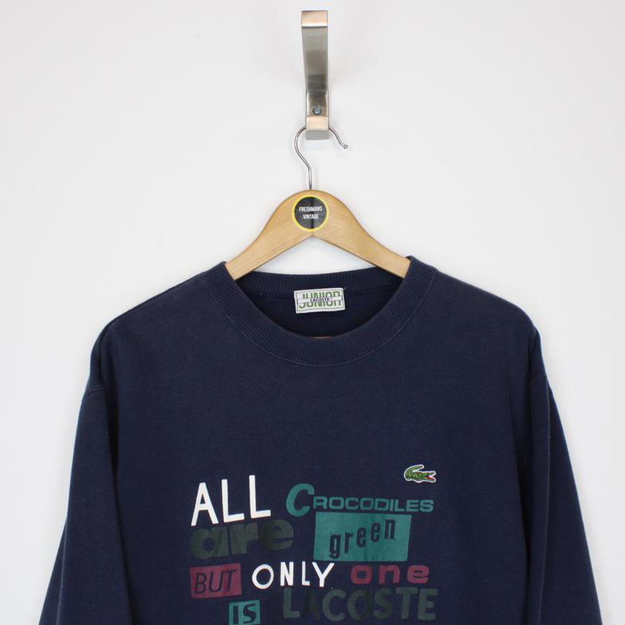 Vintage 90's Lacoste Navy Blue Crew Neck Spellout Sweatshirt Jumper Size on label: 160 Our recommended size: Women's Small Pit to pit (inches): 21 Length (inches): 23 All products listed are vintage unless stated otherwise in the description. These items are pre-loved and pre-worn, resulting in small signs of wear and minor fading. We think this adds to their unique authenticity, but if an item has any major flaws these will be stated below. Please contact us if you have any further questions!